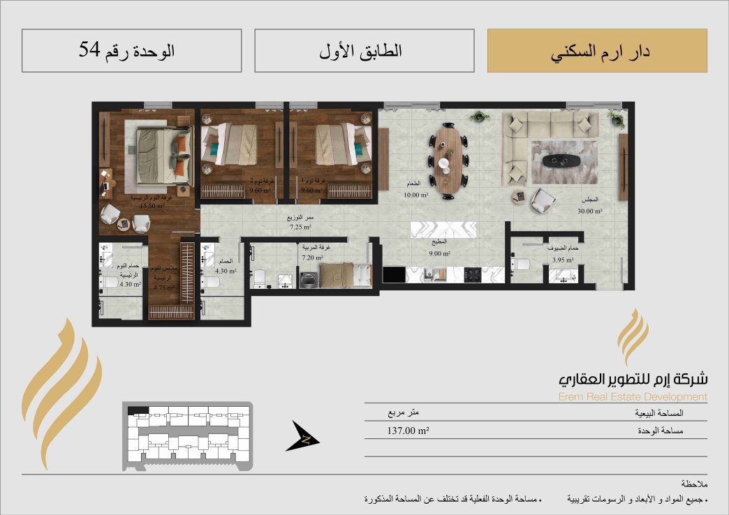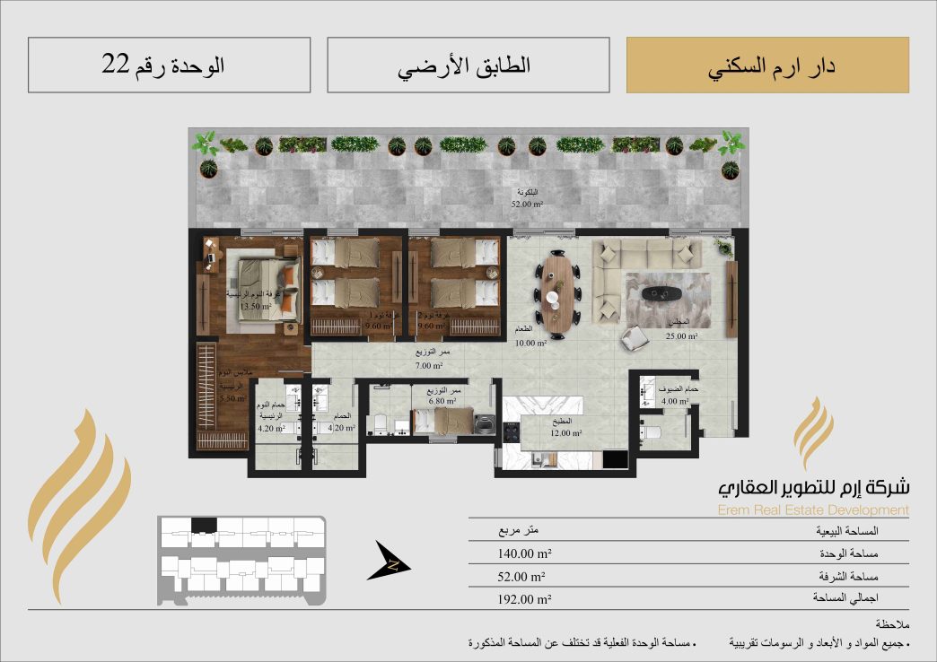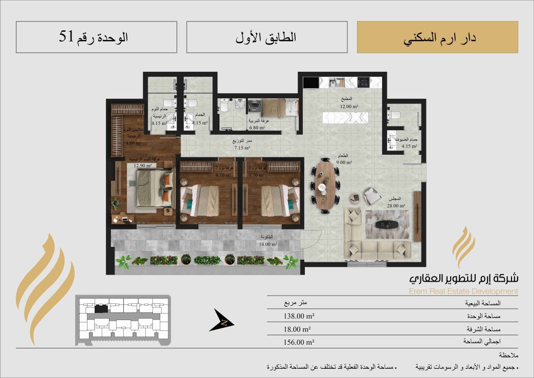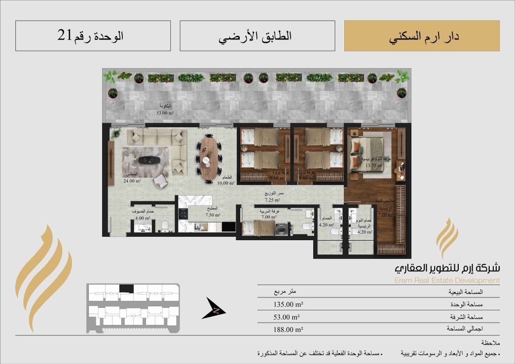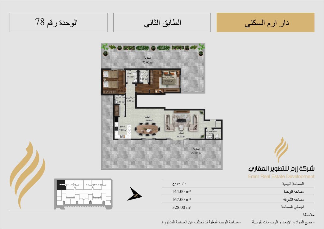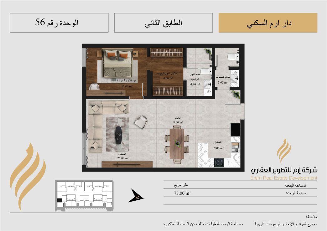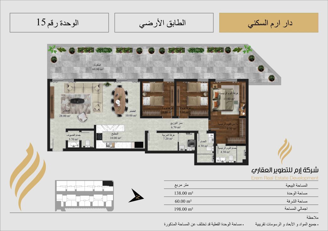 Erem Real Estate Company offers the Erem Residential Neighbourhood project in ِAl Olaya District which includes 12 buildings, each containing 4 units with a total number of 48 units. The project contains 2 villas, and the total number of apartments is 90.