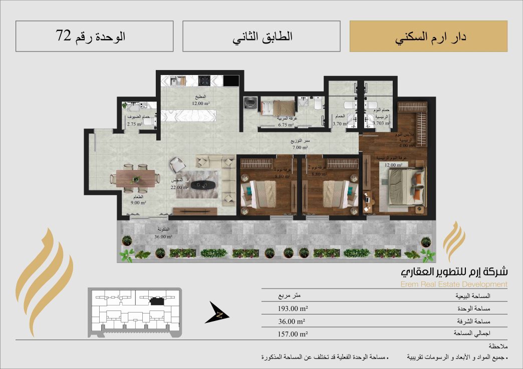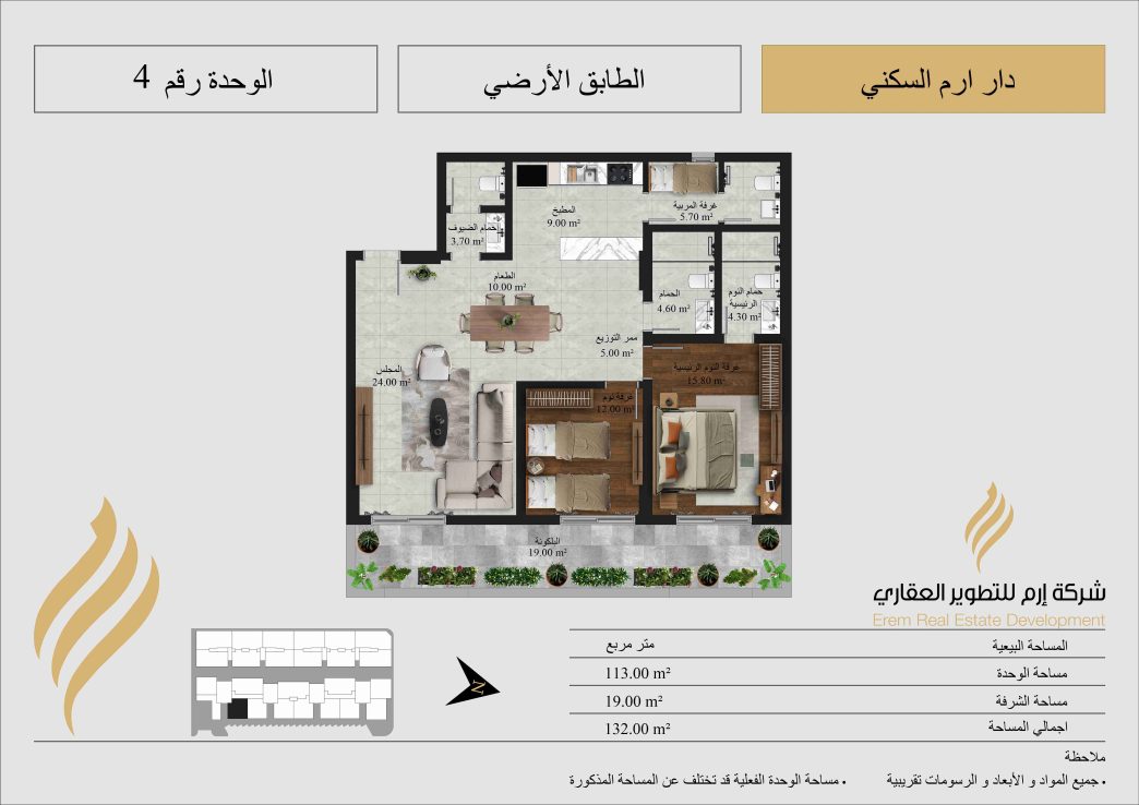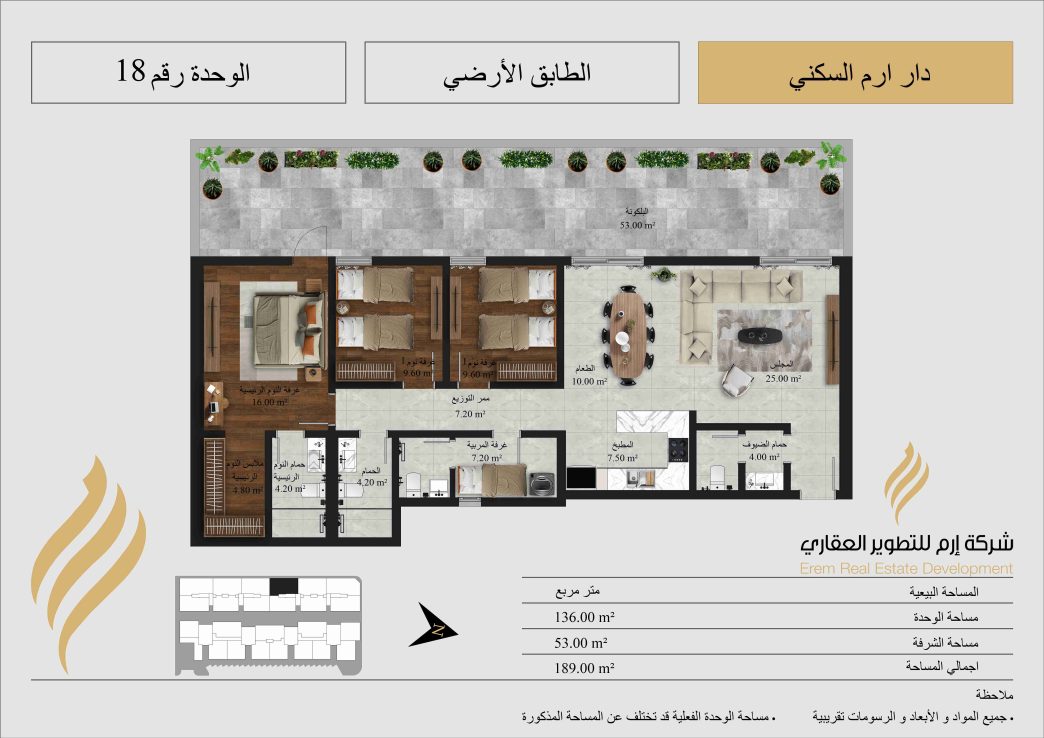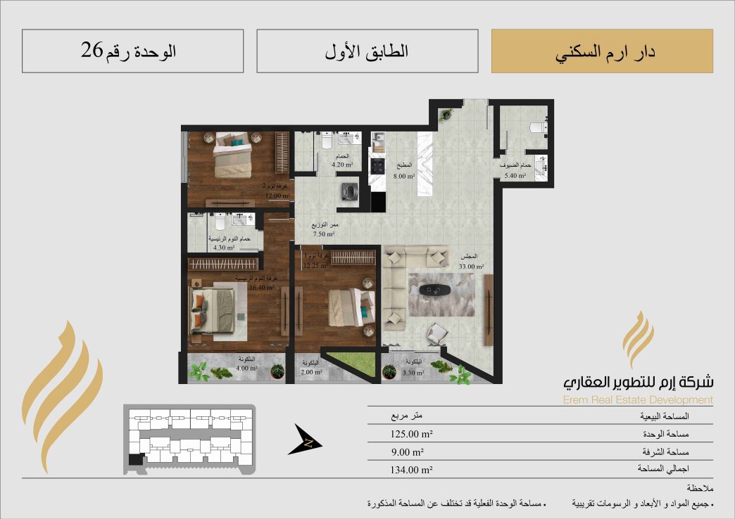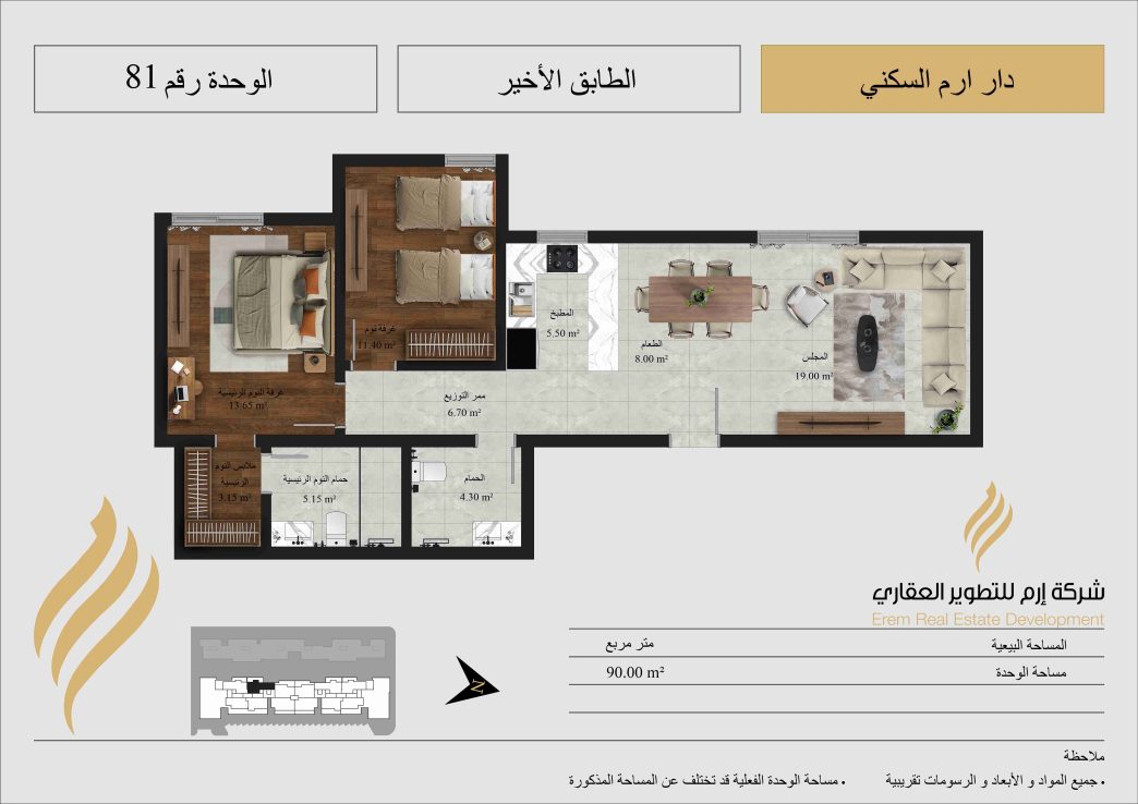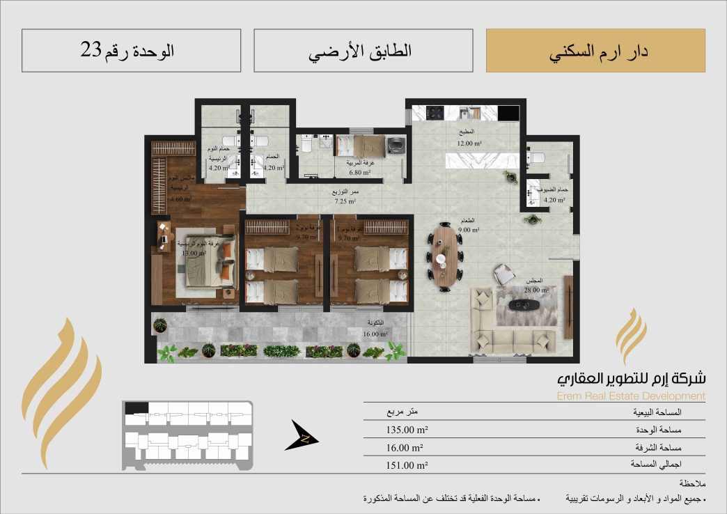 Erem Real Estate Company offers the Erem Residential Neighbourhood project in ِAl Olaya District which includes 12 buildings, each containing 4 units with a total number of 48 units. The project contains 2 villas, and the total number of apartments is 90.