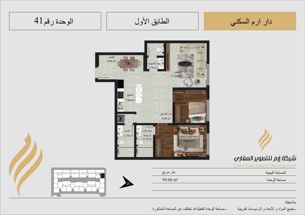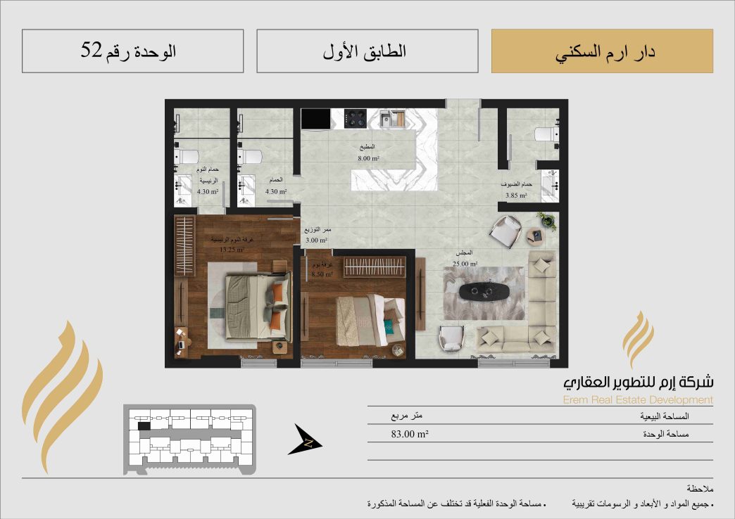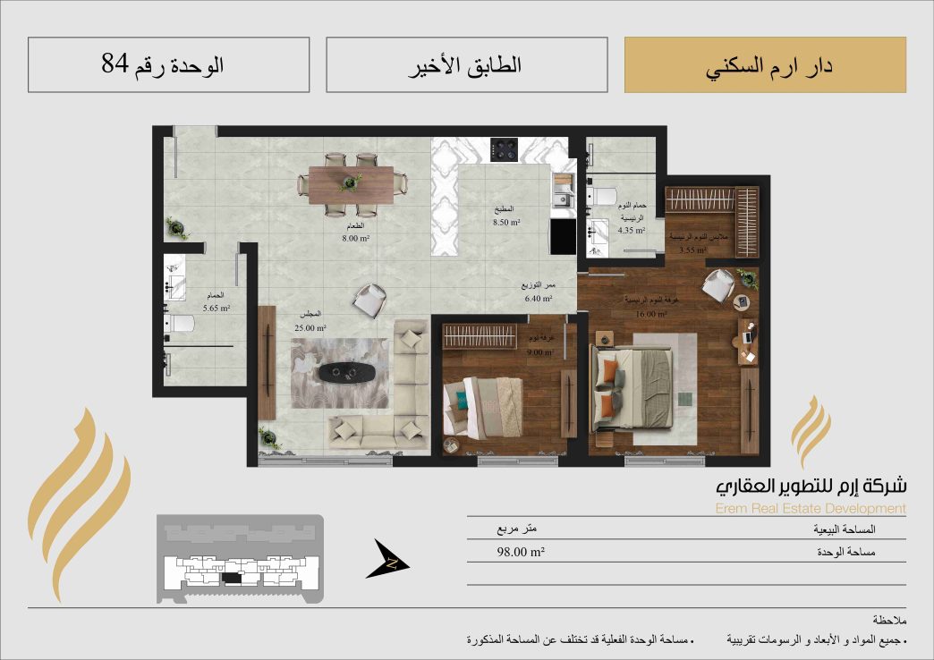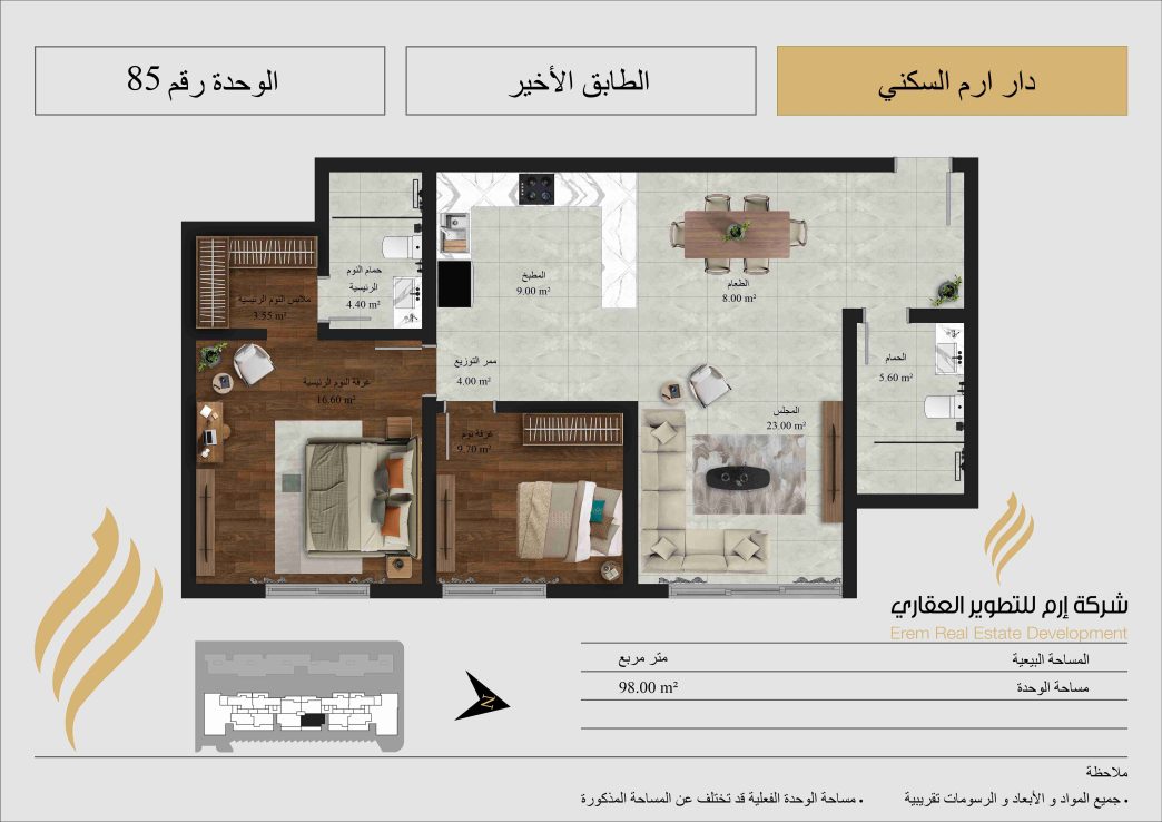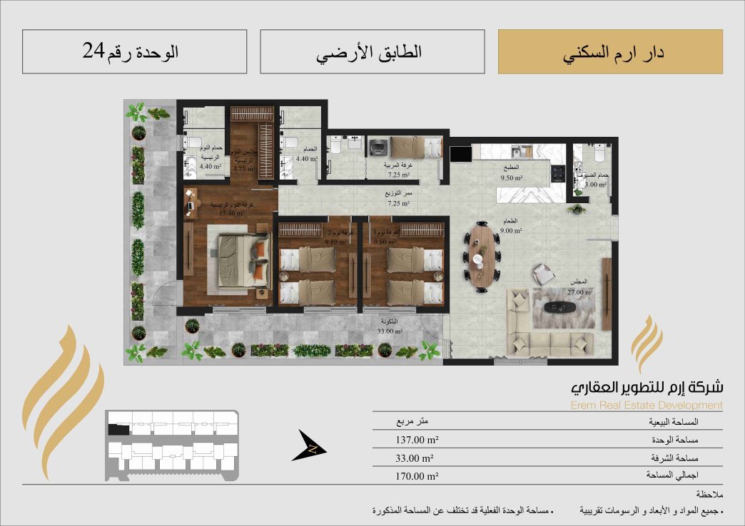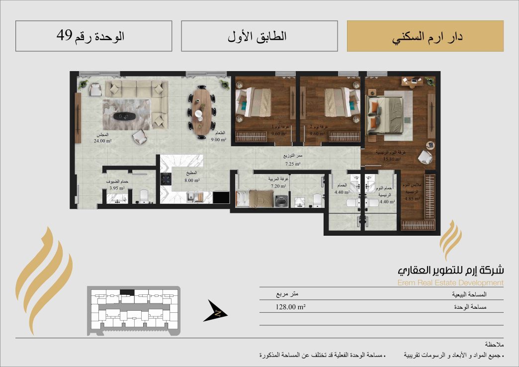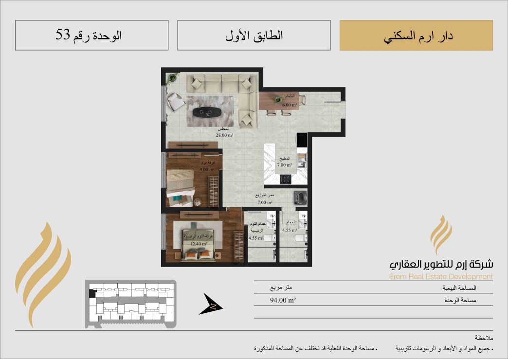 Erem Real Estate Company offers the Erem Residential Neighbourhood project in ِAl Olaya District which includes 12 buildings, each containing 4 units with a total number of 48 units. The project contains 2 villas, and the total number of apartments is 90.
