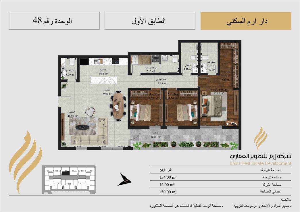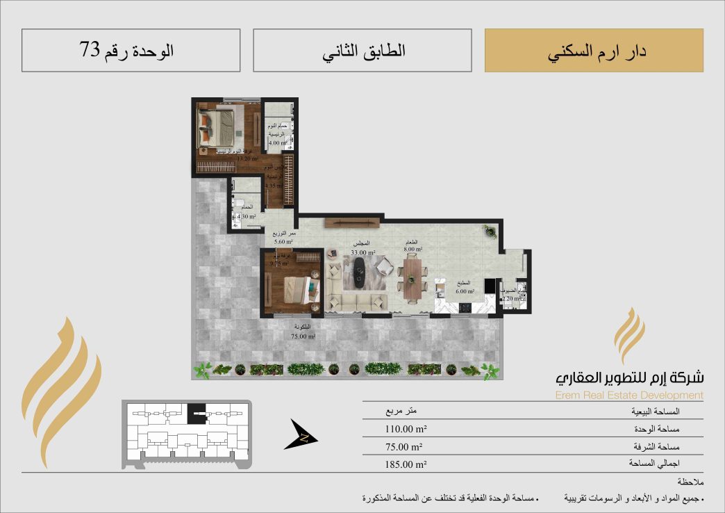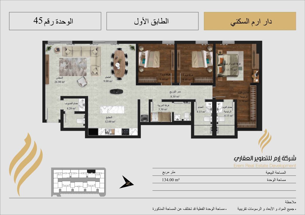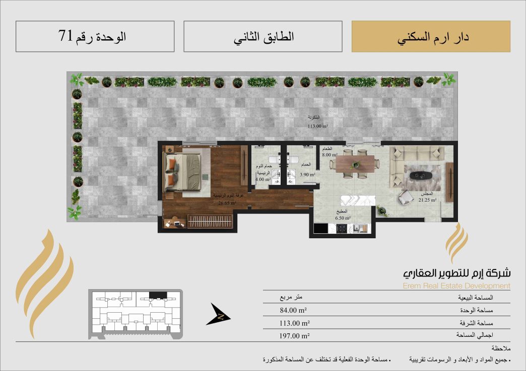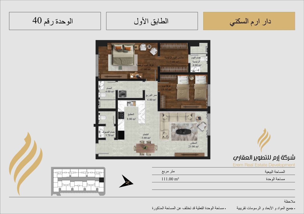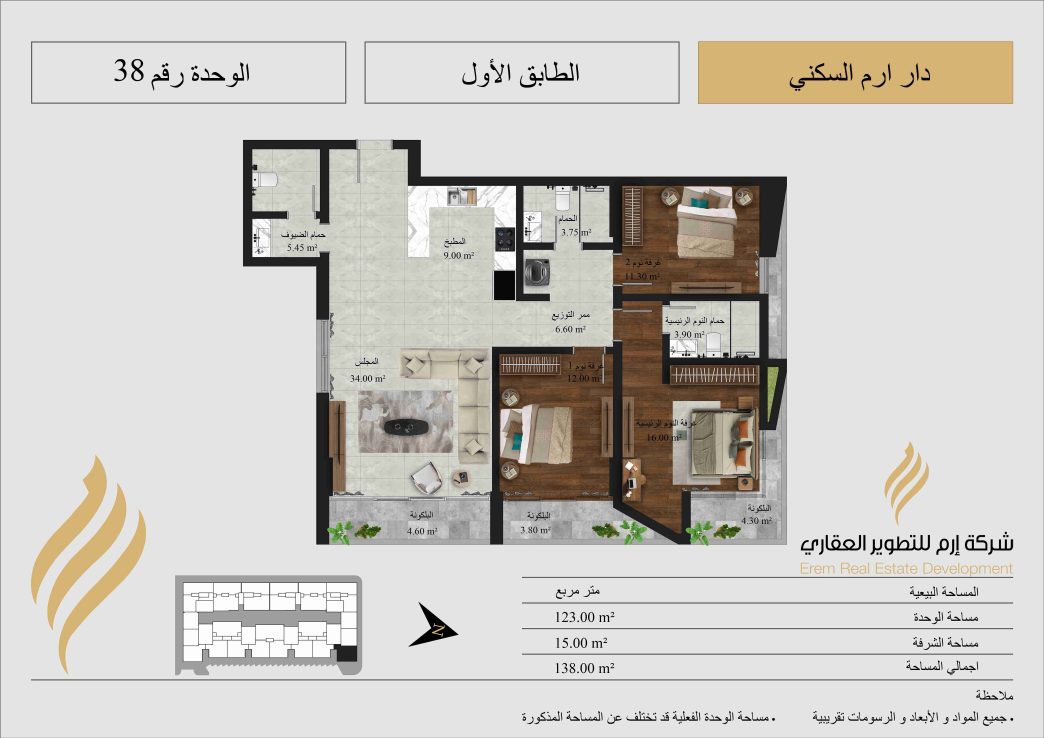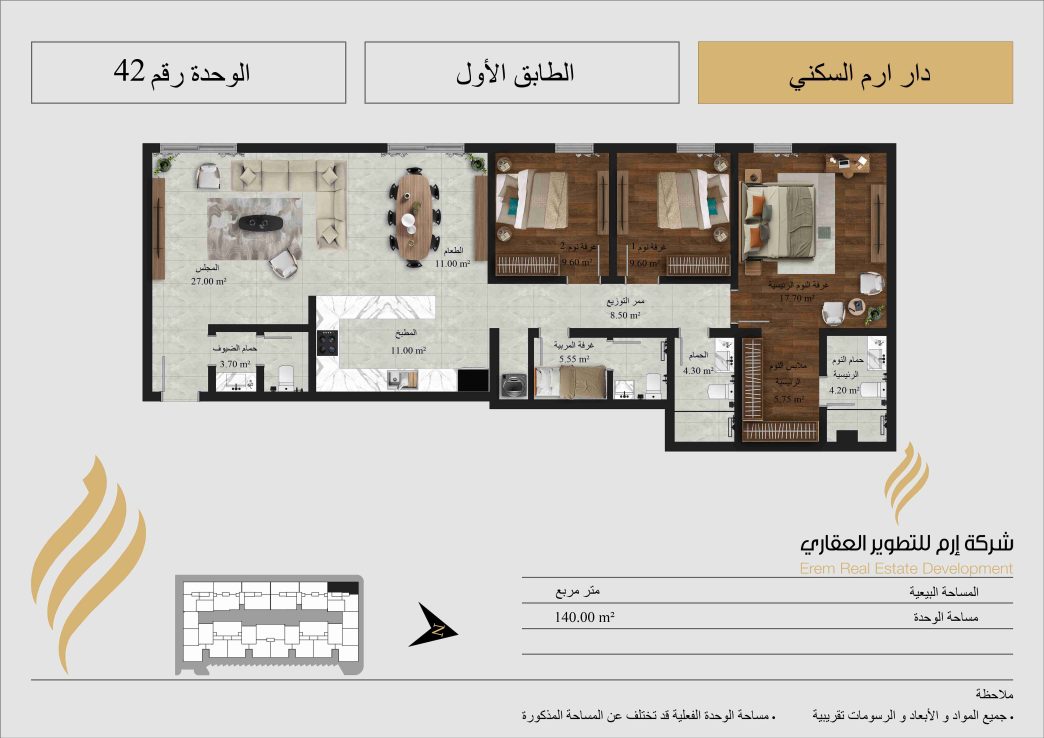 Erem Real Estate Company offers the Erem Residential Neighbourhood project in ِAl Olaya District which includes 12 buildings, each containing 4 units with a total number of 48 units. The project contains 2 villas, and the total number of apartments is 90.