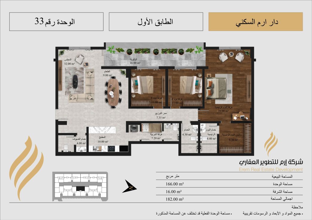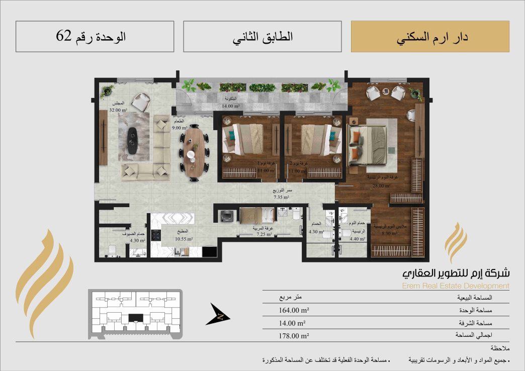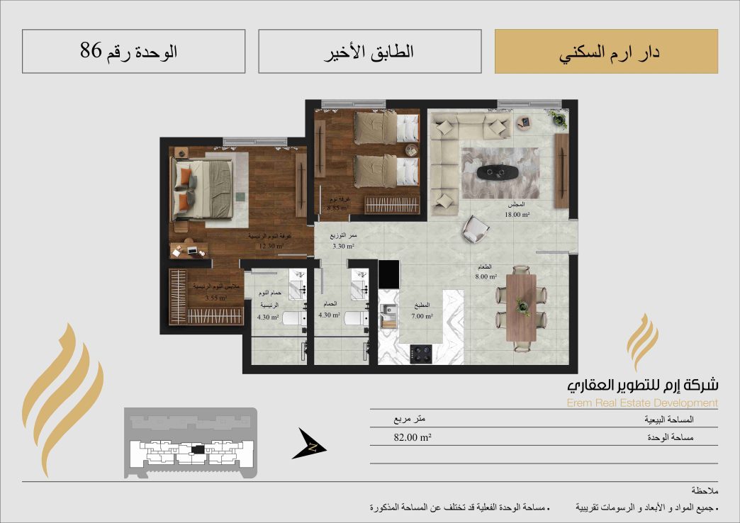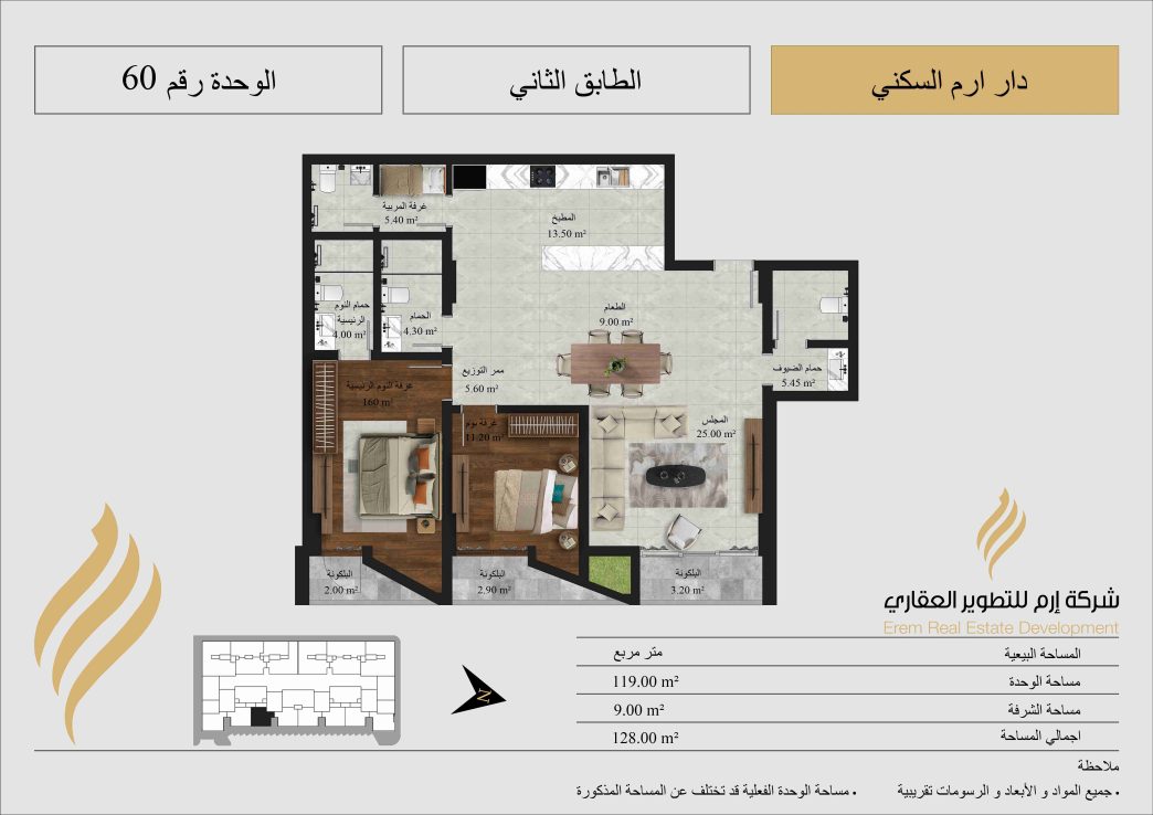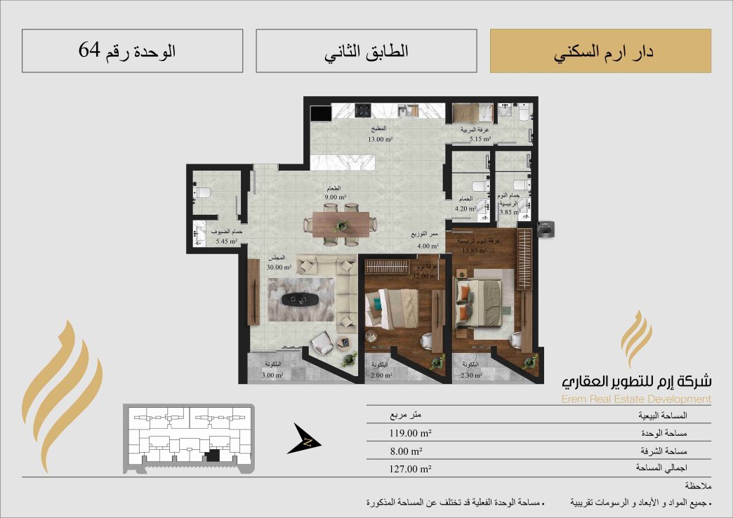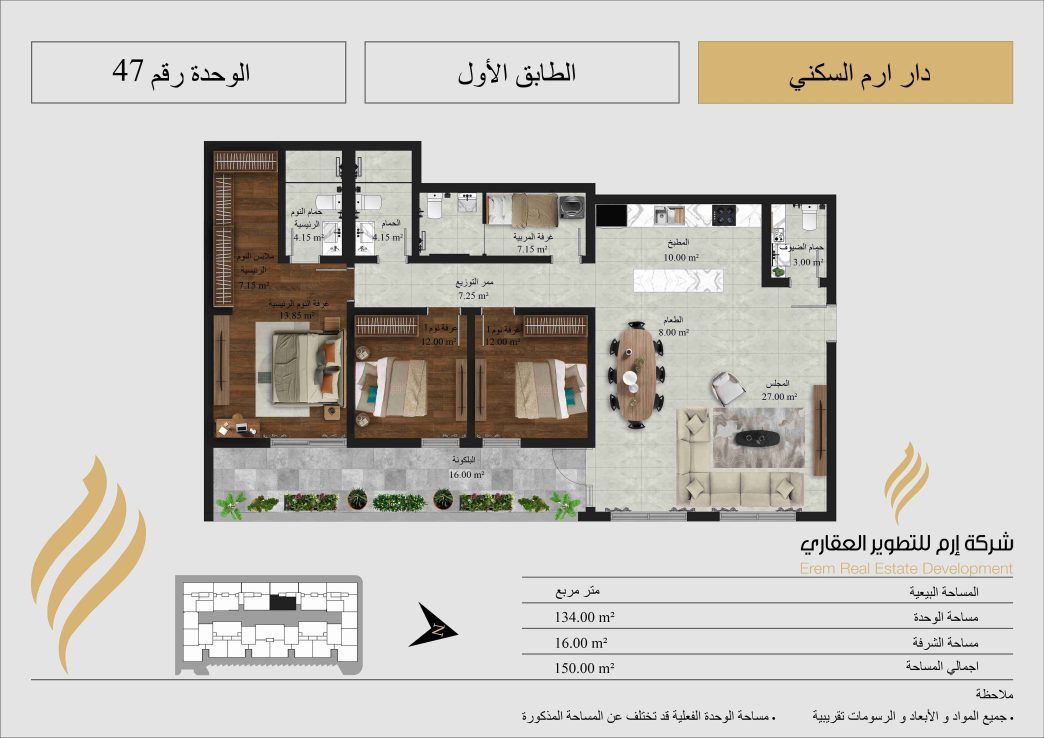 Erem Real Estate Company offers the Erem Residential Neighbourhood project in ِAl Olaya District which includes 12 buildings, each containing 4 units with a total number of 48 units. The project contains 2 villas, and the total number of apartments is 90.