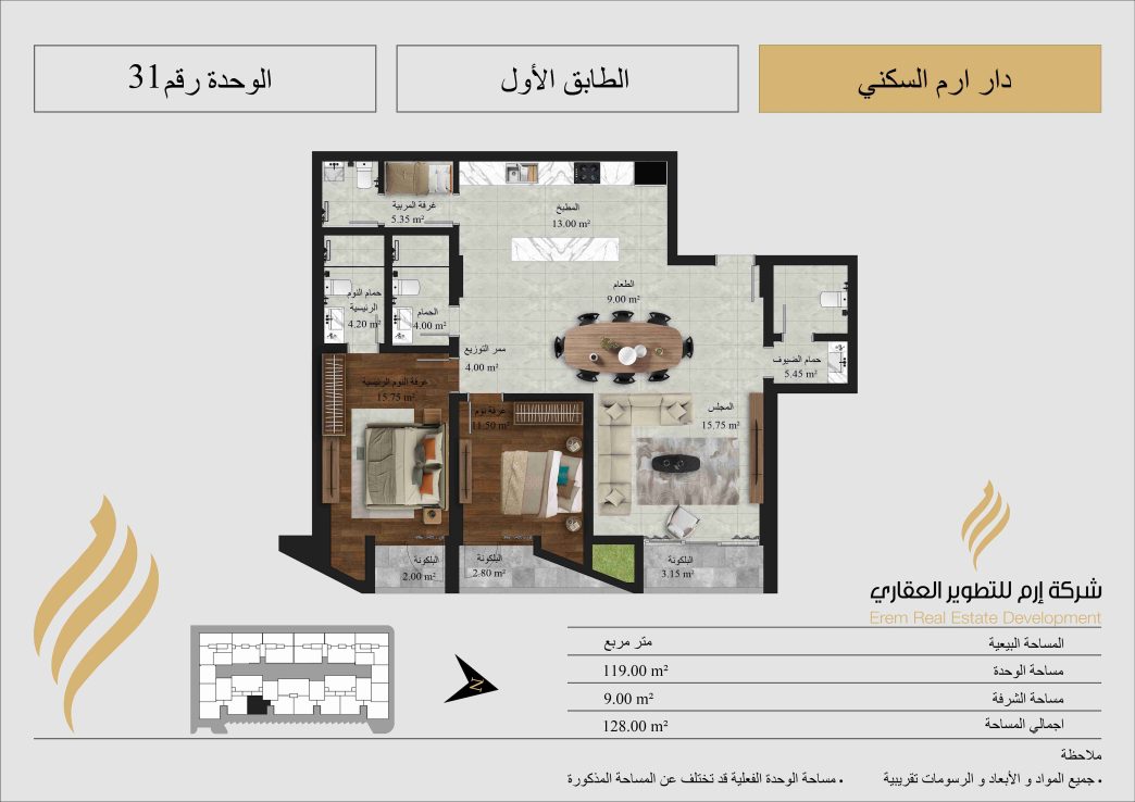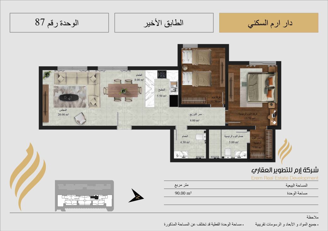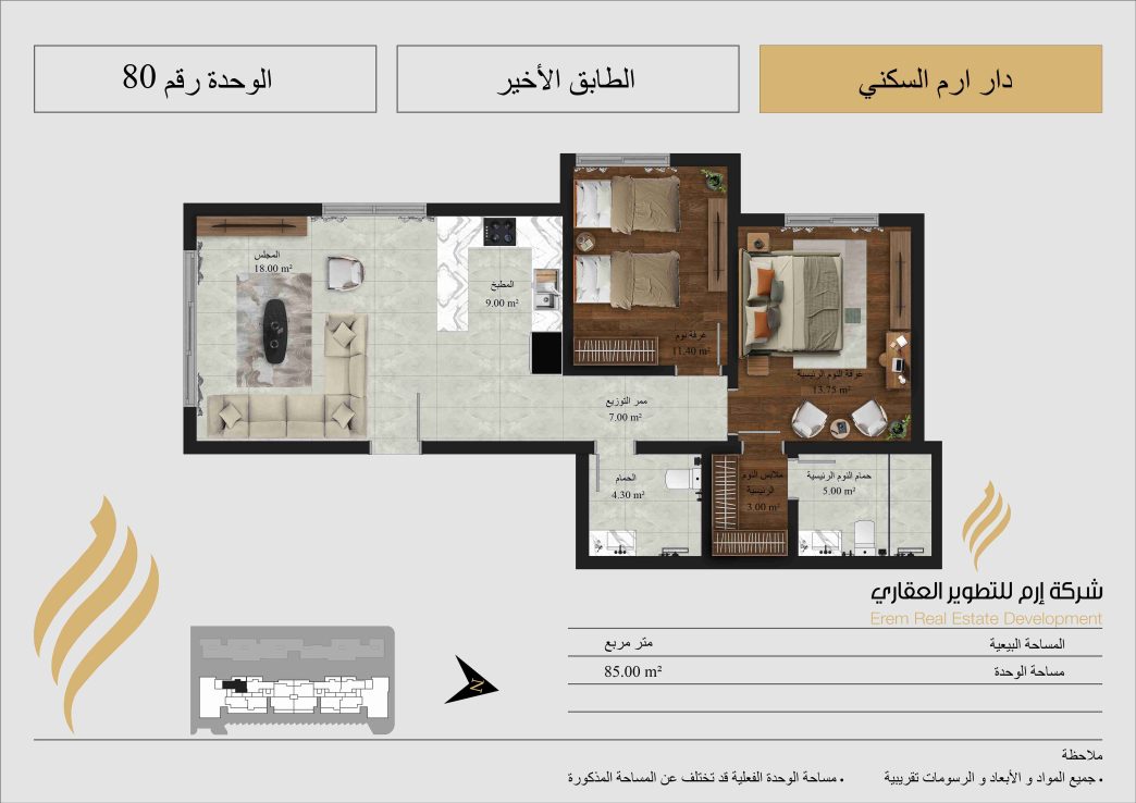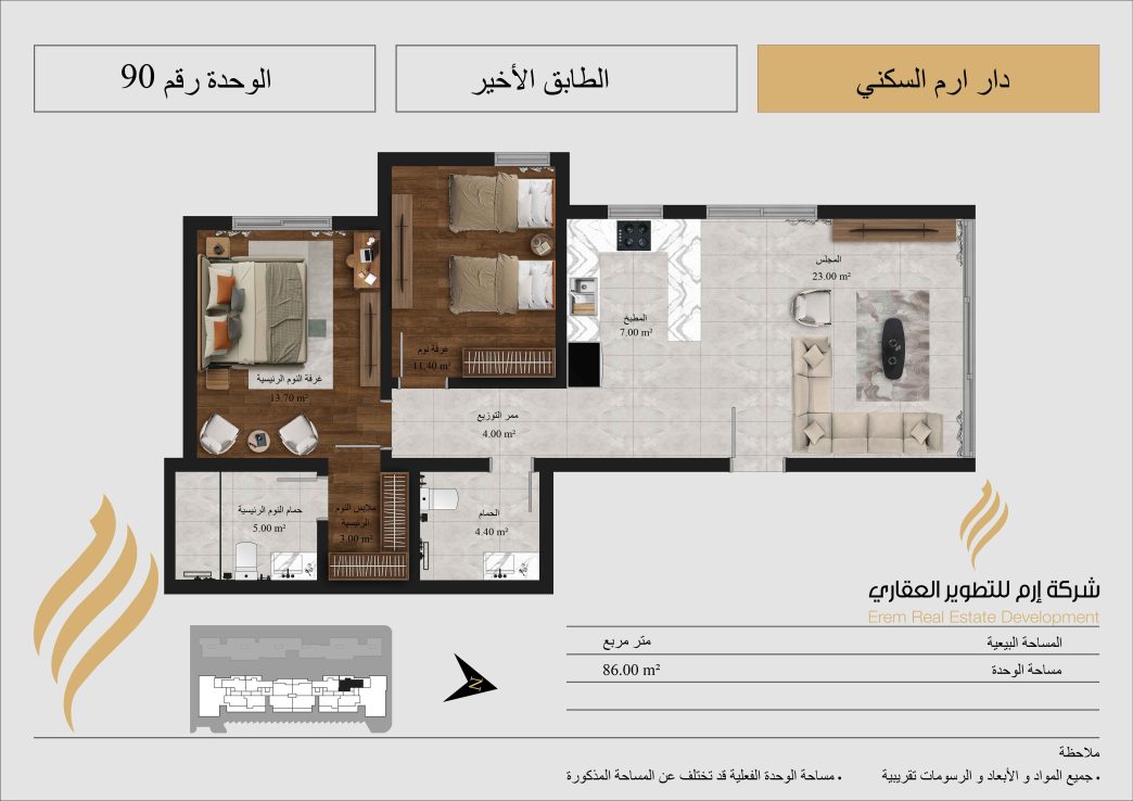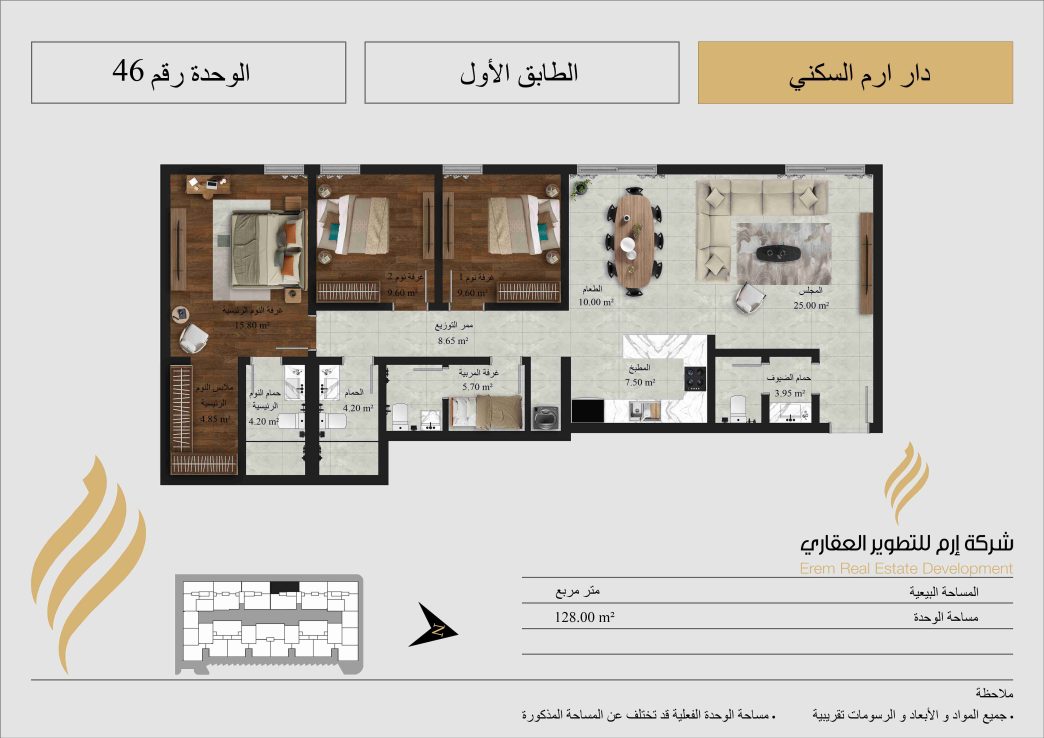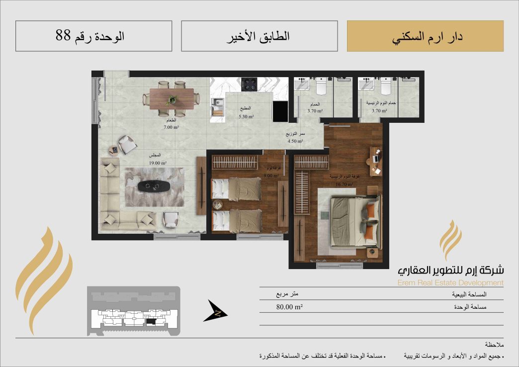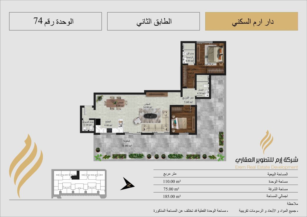Erem Real Estate Company offers the Erem Residential Neighbourhood project in ِAl Olaya District which includes 12 buildings, each containing 4 units with a total number of 48 units. The project contains 2 villas, and the total number of apartments is 90.
